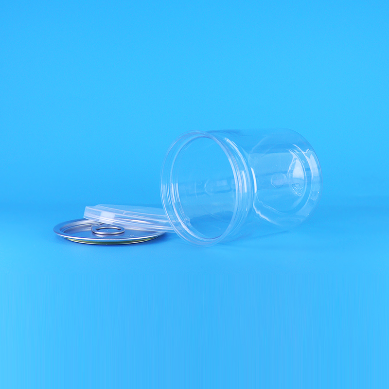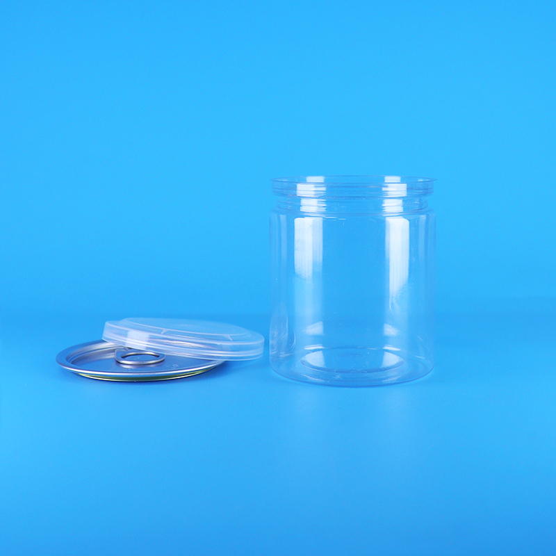 密封可能な透明丸型ベビーフードイエローピーチPETプラスチック缶イージーオープン蓋